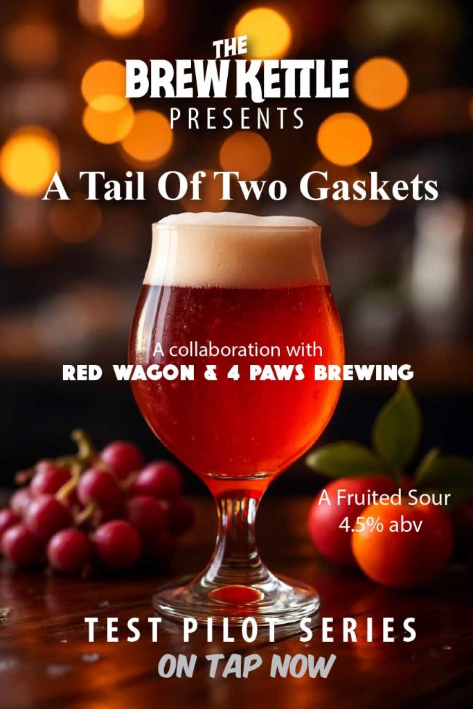 A collaboration with our friends at Red Wagon and 4 paws Brewing. Dive into the refreshing embrace of A Tail of Two Gaskets, a vibrant fruited sour that dances on the palate with a playful trio of watermelon, cucumber, and hibiscus.
